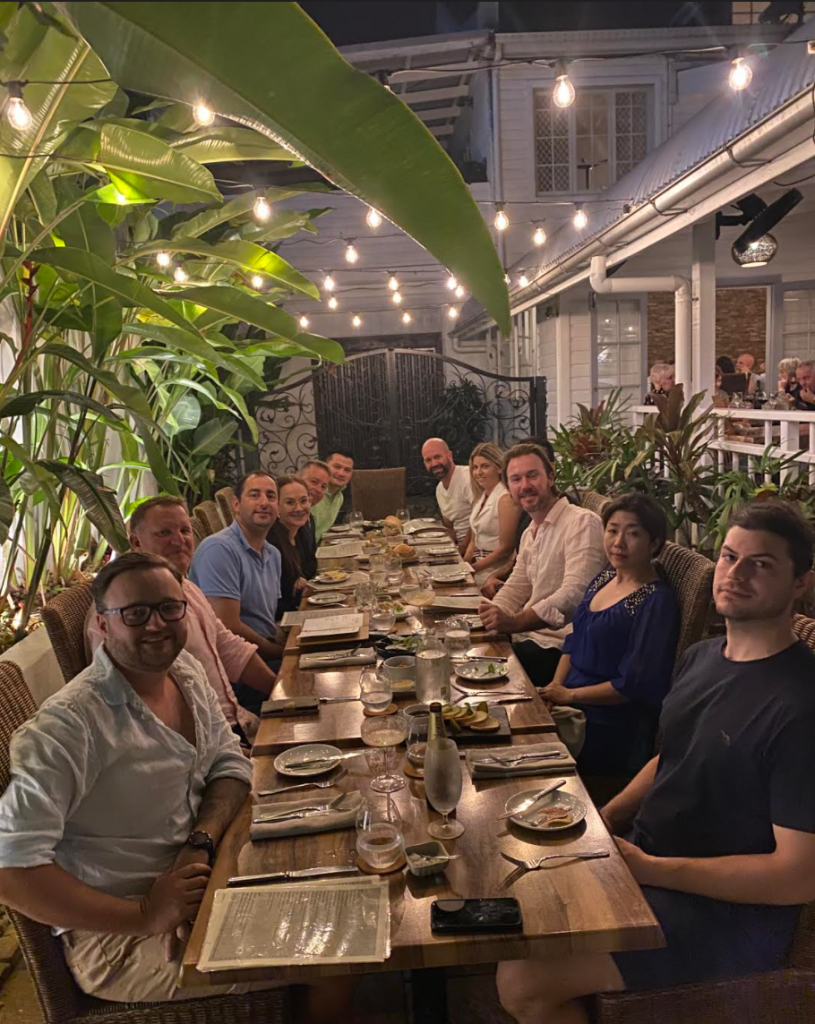 One of the highlights of the trip was a breathtaking helicopter tour over the stunning coastline, offering a bird’s eye view of Byron Bay’s picturesque landscapes. In the evenings, the team dined at some of Byron’s finest establishments, including “The Beach” restaurant, renowned for its exquisite beachside setting, as well as the Ember Fine Dining Steak Restaurant and Balcony Oyster Bar. The group also delved into Byron Bay’s vibrant culture by embarking on a brewery and distillery tour, gaining insights into the local craft and flavors that make the region unique.